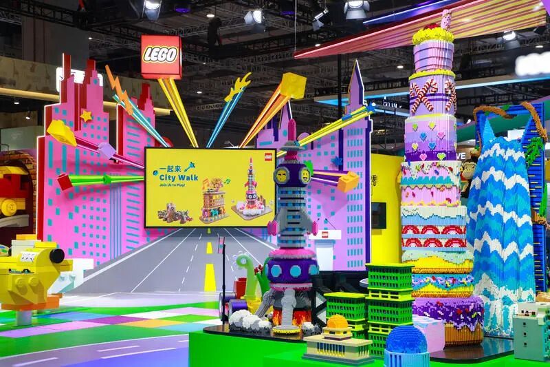 今年进博会,乐高集团以 “玩乐不停” 为主题,在约308平的展台上用乐高积木构筑出一幅描绘上海未来的城市画卷,邀请大家走进专属进博的上海“City Walk”地图,在玩乐中重新发现城市的美好、激发对生活的想象。