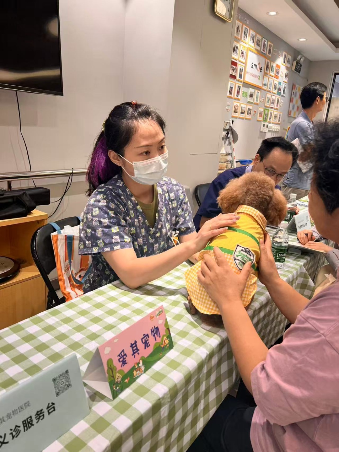 “健康守护站”前,专业宠物医生耐心地为每一位“毛孩子”进行基础健康检查,并提供科学的养护建议,将关爱落到实处,守护每一份陪伴的健康。
