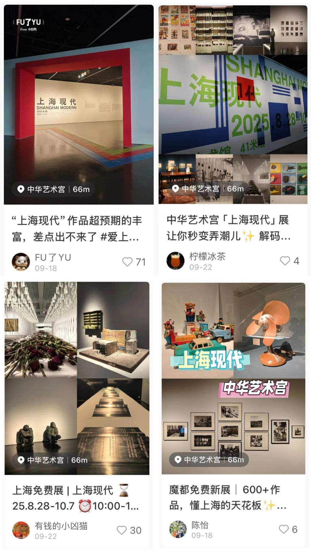 “上海现代”自2025年8月28日开幕以来,展期内36个公众开放日里,逾35万人走进展厅,邂逅上海这座城市的过去与现在。举办各类公共教育活动56场,构建了兼具学术深度与公众趣味的学习与体验平台,涵盖专家讲座、体验工坊、深度导览及城市漫步等,将展览的艺术内涵与蕴含的城市精神延伸至更广阔的公共领域。展览吸引央媒省媒的热情报道,多位观众在小红书等线上平台分享看展心得,“这就是爱上海的理由”,“上海人一定要看的展”,“让你秒变弄潮儿”……展览全媒体影响力累计3.24亿。
