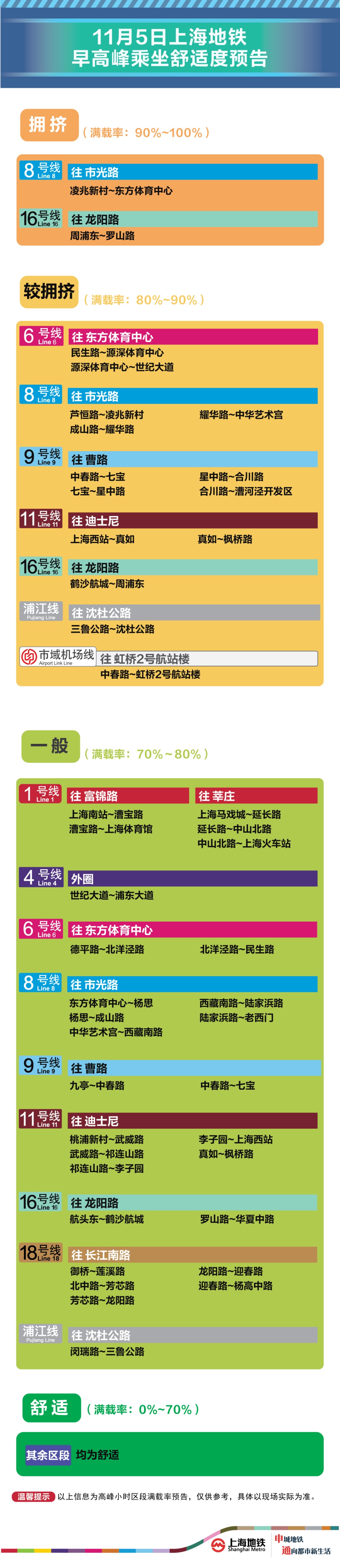 为提升上海地铁早高峰期间出行服务水平,提升乘客乘坐体验,上海地铁向乘客提供乘坐舒适度预告,方便乘客提