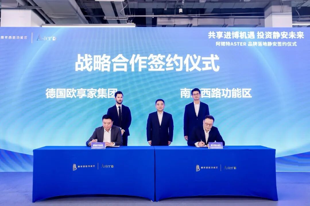 活动现场,静安南京西路功能区与德国欧享家集团现场签订合作协议,阿锶特(Aster)中国区与品牌上下游企业落地静安签约。