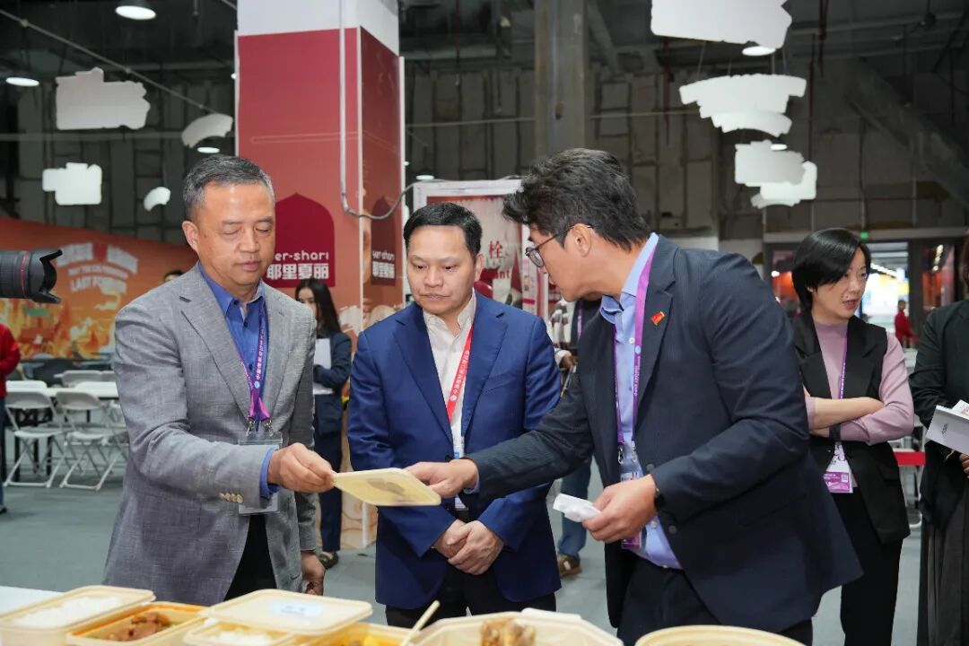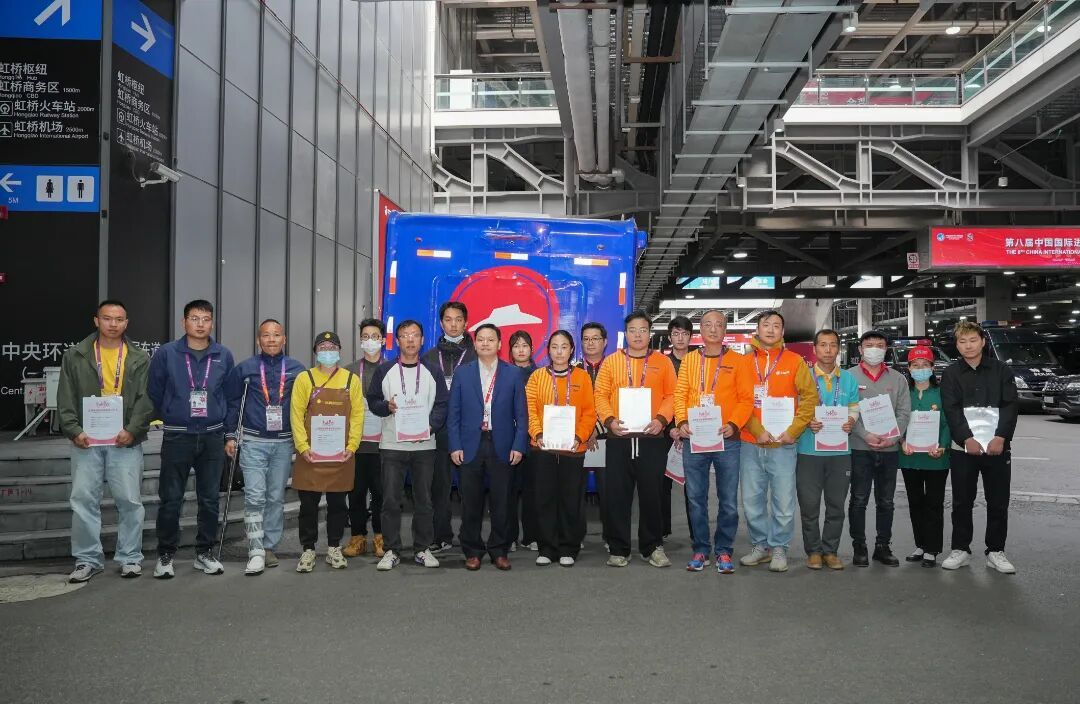 11月3日,市商务委总经济师罗志松前往国家会展中心(上海)巡视慰问第八届进博会临时供餐点位,现场查看“进博美食荟”、耶里夏丽清真点位以及各临时供餐企业,体验“小AI智餐”智慧小吃机,为流动餐车颁发公示卡。