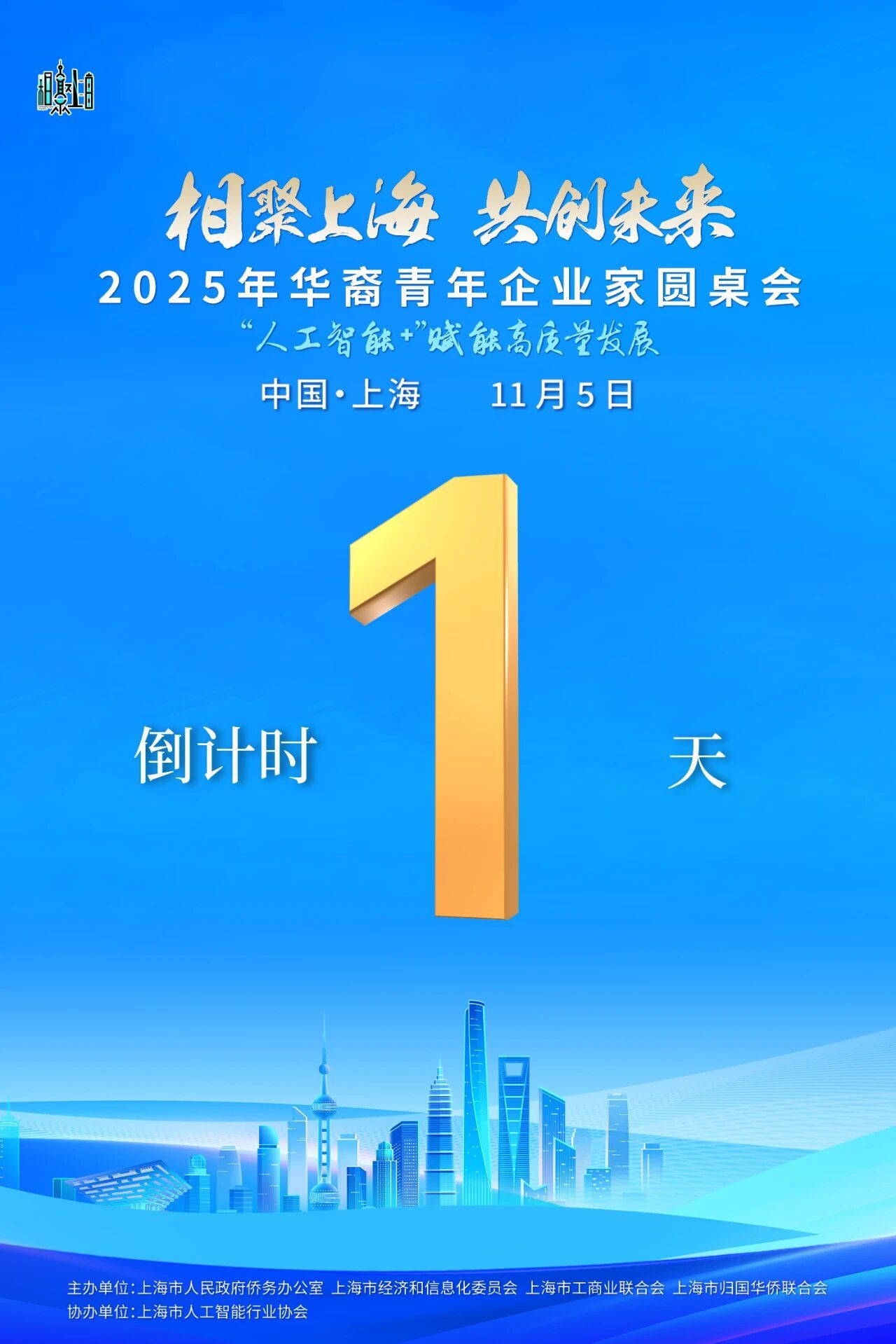 明天(2025年11月5日),由市政府侨办、市经信委、市工商联、市侨联共同主办的“相聚上海 共创未来”2025年华裔青年企业家圆桌会将在沪举行。本次将聚焦“'人工智能+’赋能高质量发展”主题,为上海“五个中心”建设贡献智慧和力量。圆桌会的最新内容,浦江同舟将第一时间带来报道,敬请关注。