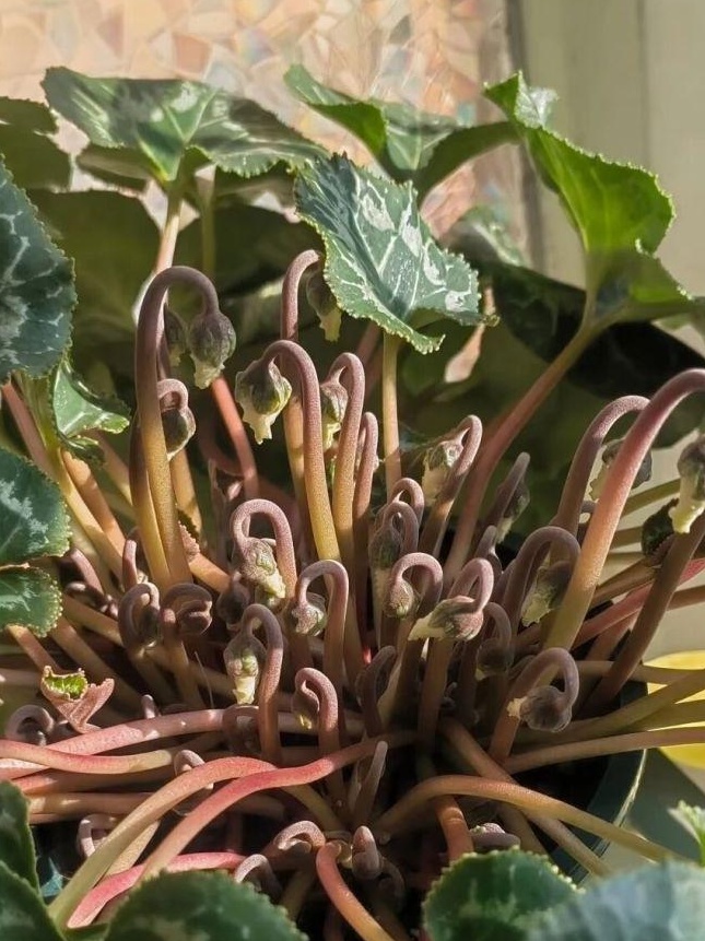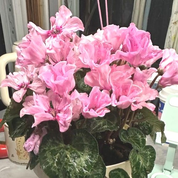 花叶共赏的优等生。只要阳光充足,肥水适量;仙客来的花朵就会蹭蹭地从叶下钻出,花期超长,可一直开花到明年5月。