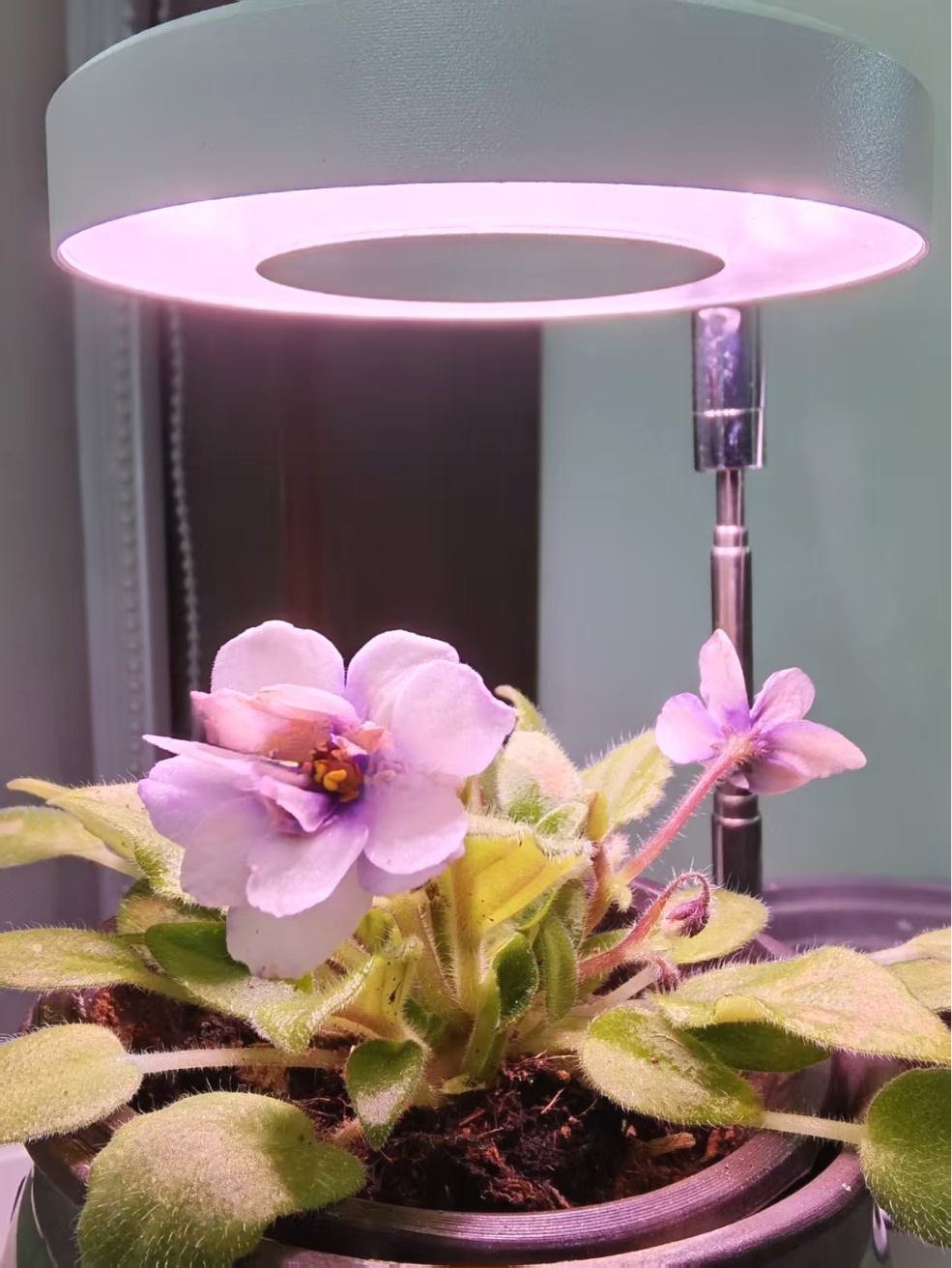桌面迷你花园。仅需一盏LED灯就能满足生长开花的需求,花朵精致细腻,不占空间。