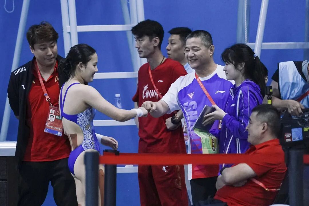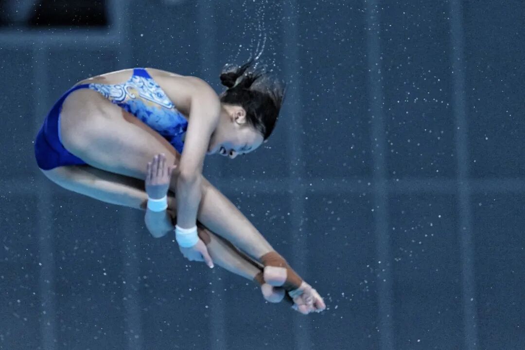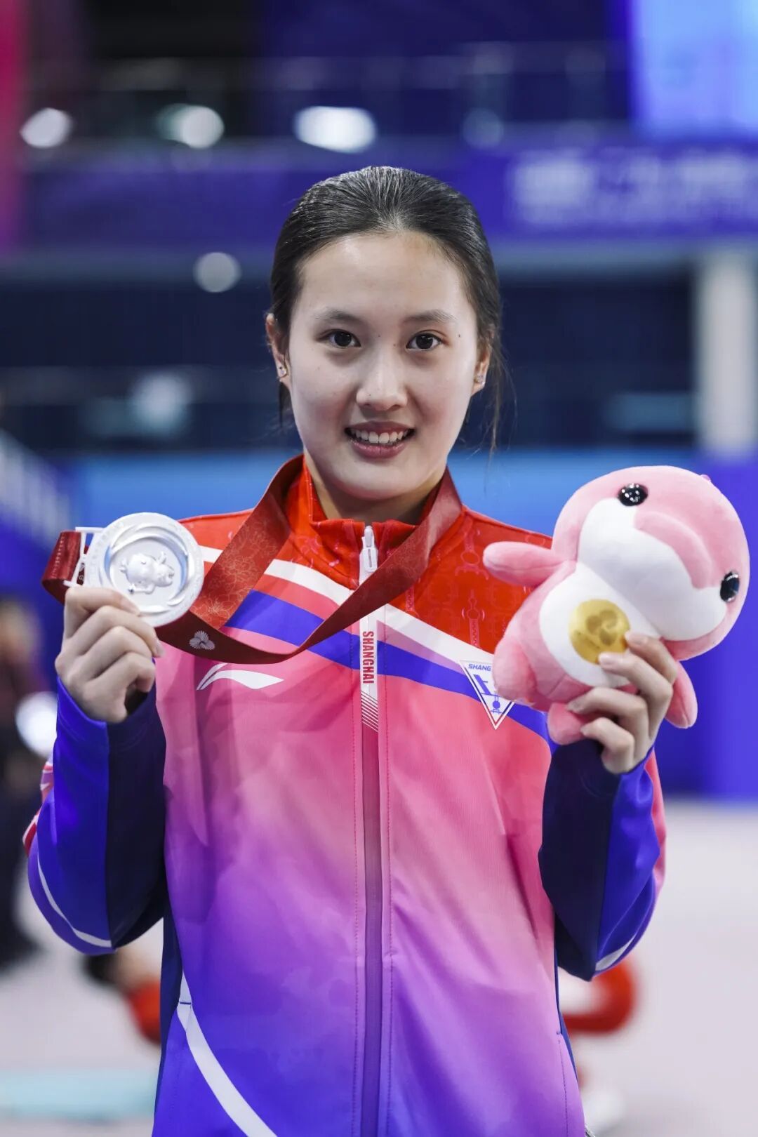 粤港澳全运会的备战期里,掌敏洁是队里练得最狠最苦的选手之一,连教练都说她是真的在和全能“死磕”。在上海游泳馆的训练场上,小姑娘和教练一起一遍一遍抠着动作细节,一次一次做着陆上和实战演练,流下过无数汗水与泪水。厚积终于带来薄发,2025年秋天,在粤港澳全运会的赛场,掌敏洁如愿登上领奖台,多年前定下的“死磕”的决心,变作赛后发自内心的甜美笑容。