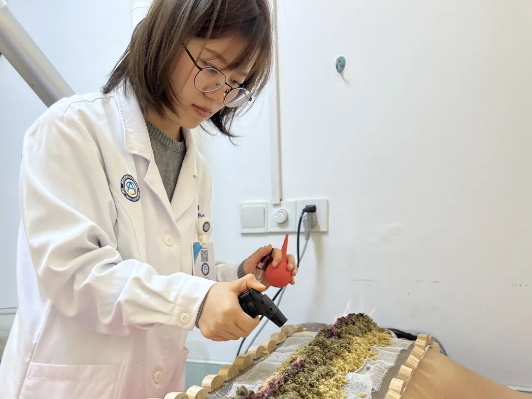 为她治疗的吴嘉珍医师采用了火龙灸疗法。