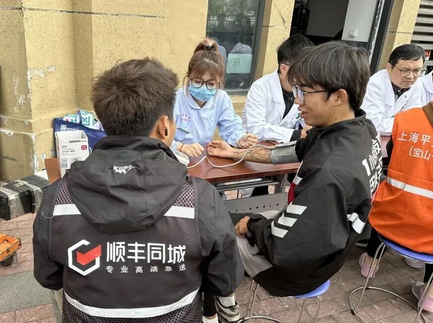 “双十一”将近,快递小哥们即将迎来一年中最忙碌的时段,在这紧张忙碌的氛围中,一份温暖而贴心的健康关怀悄然送达。近日,宝山区吴淞中心医院医技第三党支部与顾村镇菊太路街区党支部开展共建活动,为奔波忙碌的顺丰快递小哥以及周边居民送去便捷、暖心的健康服务。