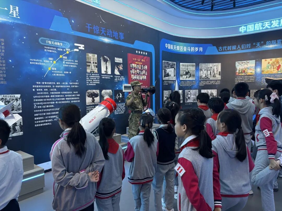 最后一站,国防科技体验让队员们沸腾。模拟射击室里,屏息瞄准、稳腕扣动扳机的动作,让大家理解军人的专注与果敢;VR升空设备中,他们“跟随火箭升空”,仿佛与航天员一同逐梦星辰;1:1还原的波音737NG模拟驾驶舱前,队员们以“小飞行员”身份完成空中任务,协作与挑战中,科技的力量与使命的担当悄然融合。