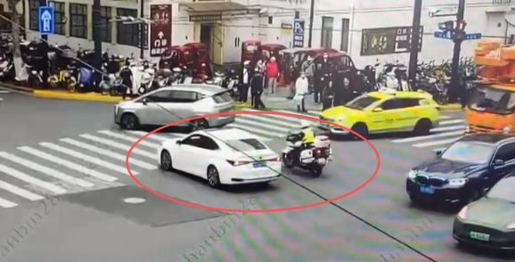 辅警立即将情况上报。接到消息后,另一名虹口交警迅速赶到现场。观察到车内孕妇脸色苍白、表情痛苦,在安抚家属后,交警示意司机跟随自己的警用摩托车行驶。