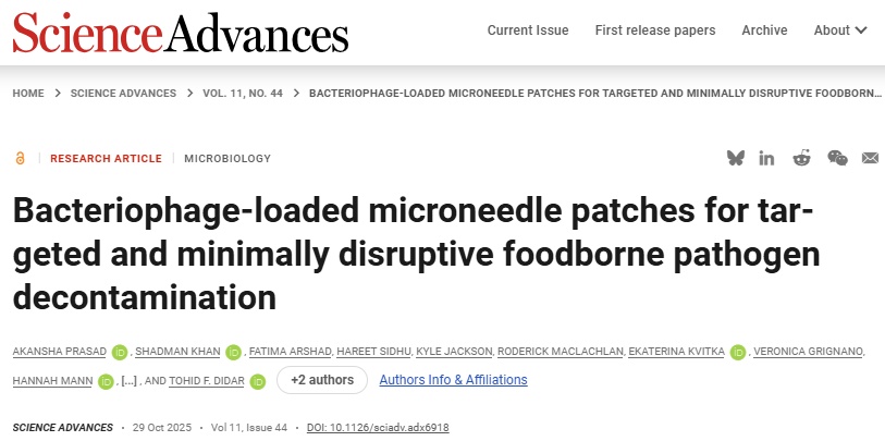如今,加拿大麦克马斯特大学的研究团队给出了创新方案——将噬菌体与医疗领域常用的微针技术结合,研发出一种微针贴片。这种贴片尺寸比指甲盖更小,表面布满微小针头。使用时,只需将贴片贴在食品表面,微小针头就能直接将噬菌体“注射”到食物内部,精准作用于潜藏在食物中的致病菌,且不会对食物的结构造成破坏,也不会影响食物中的有益菌群。