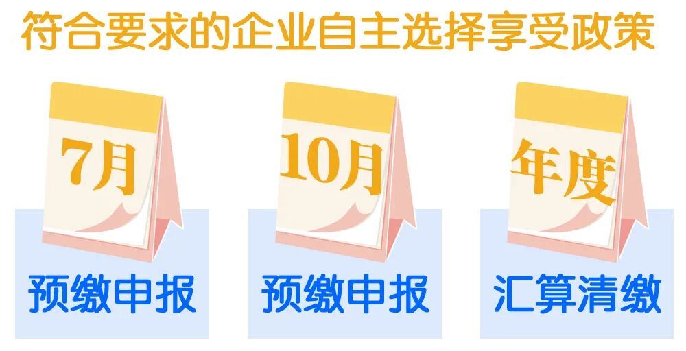 符合要求的企业可以自主选择在7月份和10月份进行预缴申报时,以及年度汇算清缴时享受政策。