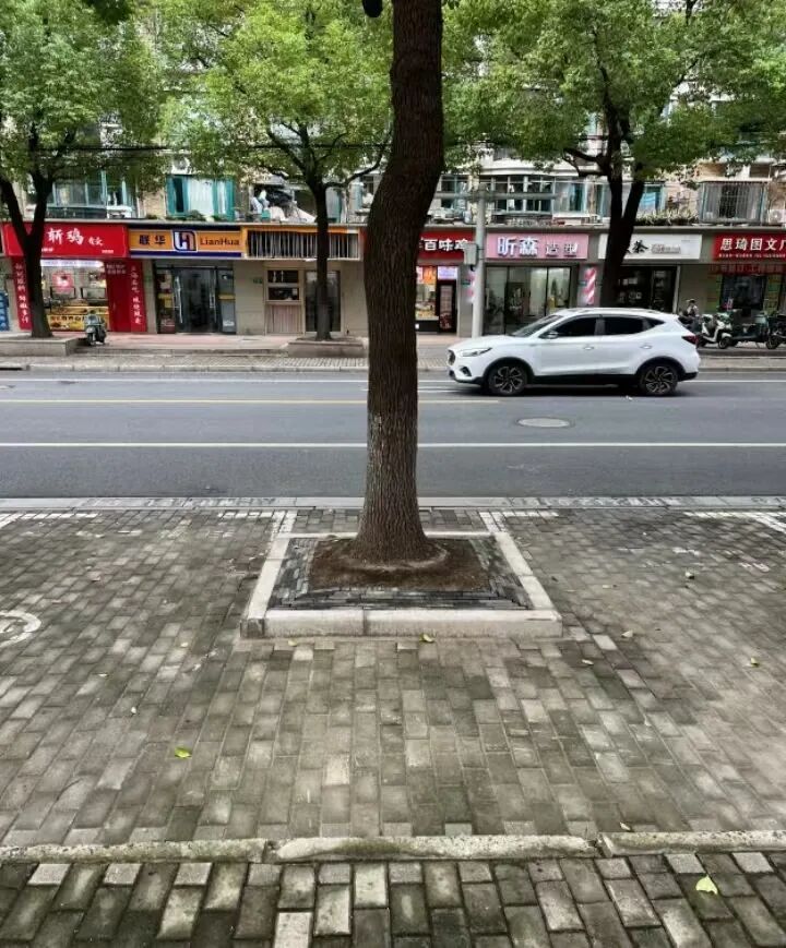 面对此类问题,镇城建中心采取兼顾安全和美观的方式,通过松土、修剪过盛根系、更换侧石、铺设透水混凝土等综合手段,疏通城市的“绿色毛细血管”,最终达到不仅解决路面起伏问题,还增强了雨水的收集与涵养能力的目标,在方寸之间实现功能与景观的双重提升。