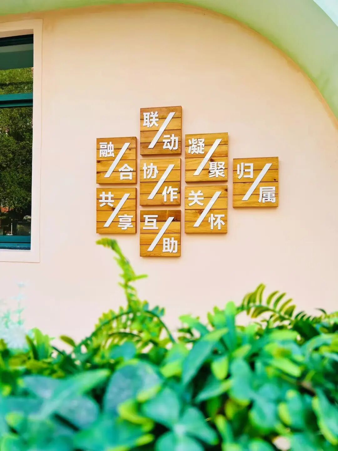 在设计细节中,外墙与窗台的常青藤绿植、入口原木装饰等细节,巧妙呼应“活跃、链接、攀升、温暖、生命、静息、恒久、友邻”这八大关键词。整体以常青绿、原木棕、脉络黄为主色调,融入自然元素,营造出清新雅致、亲近自然的“社区氧吧”,塑造一个开放、包容、温暖的公共领域,降低居民参与社区事务的心理门槛,让居民愿意来、留得住、心安宁。