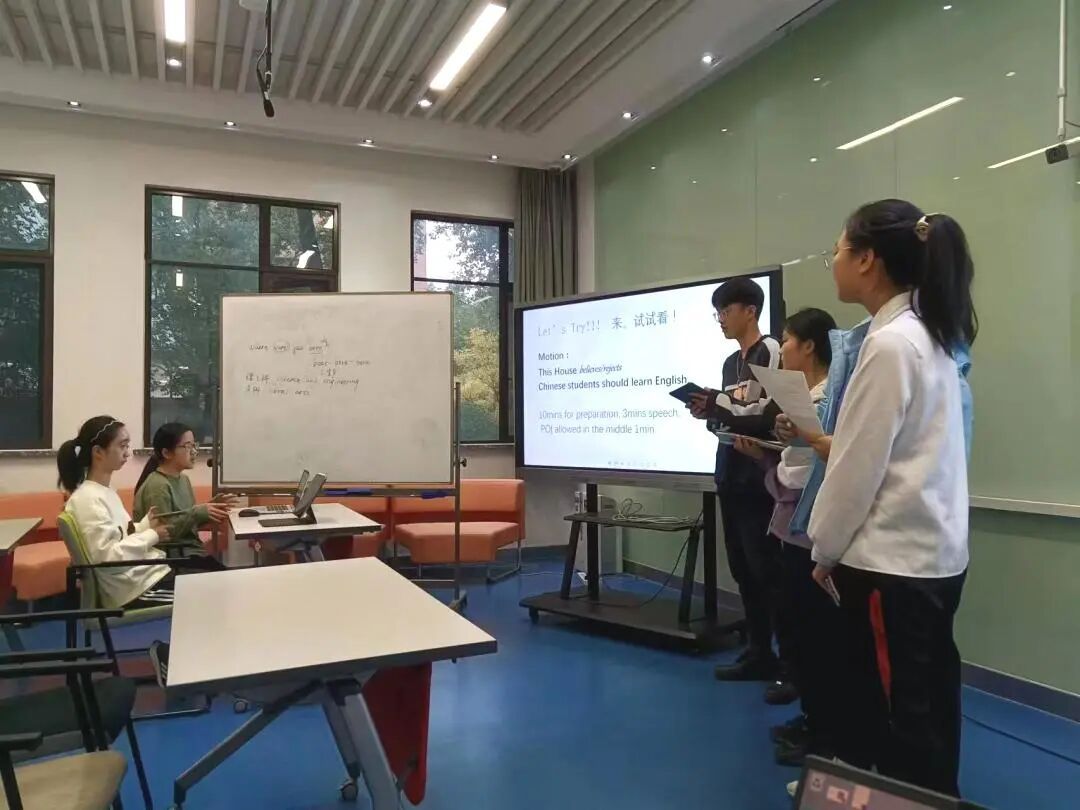 推开复旦大学本部3号楼112活动室的门,一场关于“the impact of artificial intelligence”的即兴主题演讲训练正热烈进行——同学们时而比划着手势,在脑海中搜寻词汇;时而因一个幽默的比喻开怀大笑,思想的火花在轻松的氛围中悄然迸发。