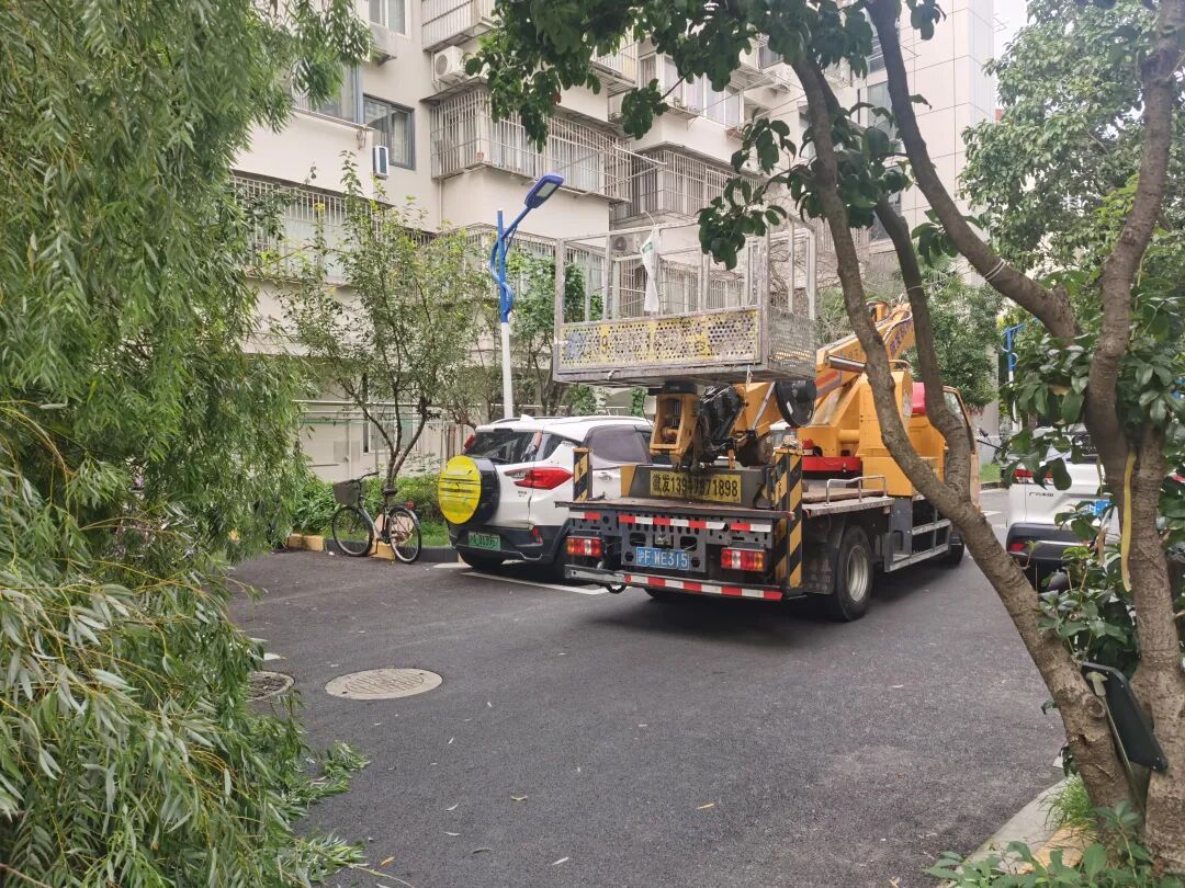 小区居民发现险情后,第一时间向张家园居委会通报。居委值班人员立即联动物业赶赴现场查勘,很快判断出这一情况超出社区处置能力,“树木体量大、倒伏位置复杂,仅靠人力和简单工具无法安全清理,必须调用专业登高车辆与设备。”面对紧急状况,居委会迅速启动“民情快办”应急响应程序,将现场情况、研判结果及所需支援精准上报至街道。