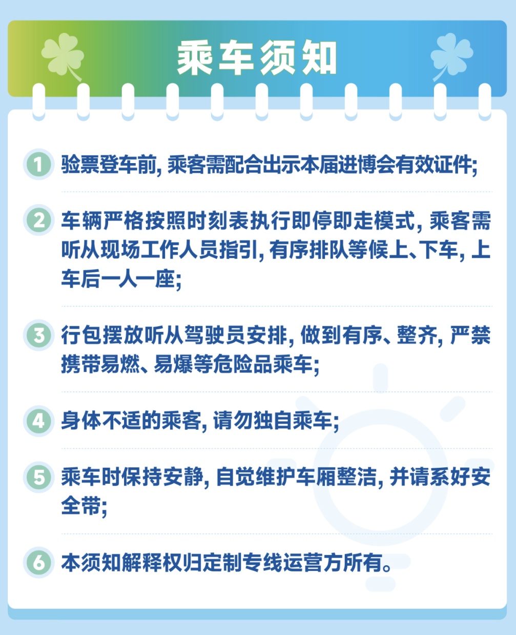 展会期间,搭乘定制专线的乘客,还能免费寄存2件行李哦!解放双手,轻松逛展!