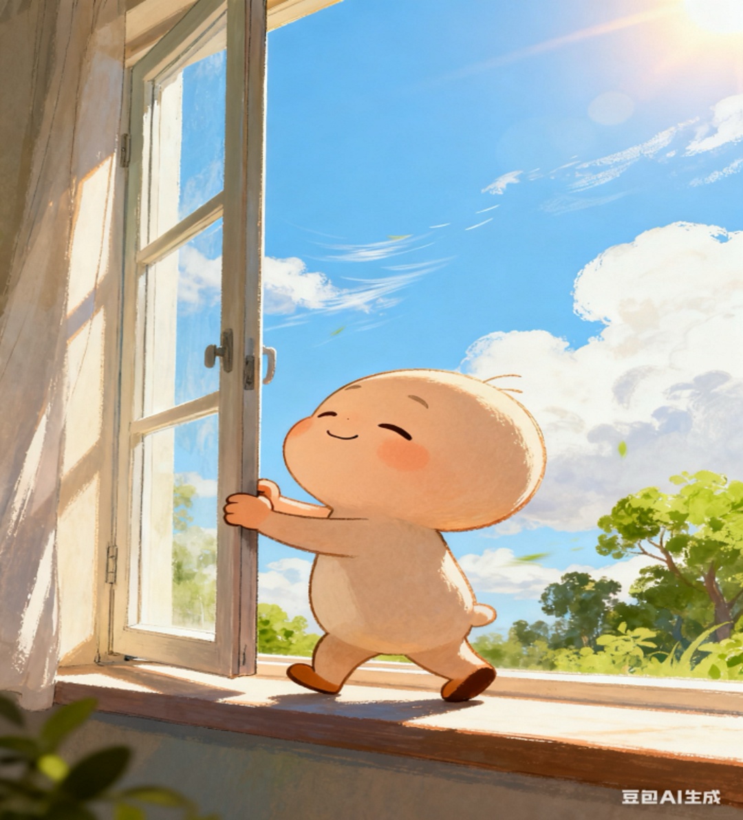 3. 给空气“洗洗澡”:经常开窗通风,每天2—3次,每次不少于30分钟。自然风是最天然的“空气净化器”。