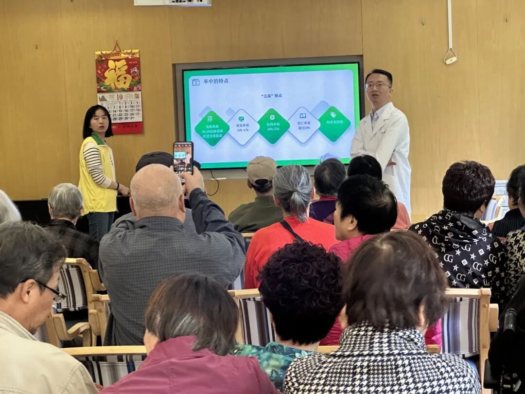 在秋风送爽的十月,恰逢第20个“世界卒中日”与重阳节,一场以“尽早识别、立刻就医”为主题的脑卒中科普宣传健康咨询活动,于10月31日在上海市普陀区周家巷小区展开。本次活动由同济大学附属同济医院神经内科联合患者服务中心主办,旨在提高居民对脑卒中的认知和预防意识。神经内科汪锡金主任、潘丽珍副主任、龚海燕护士长、薄密珍护士长和多名医生护士参加此次活动。通过专家宣讲、健康咨询和免费检测等形式,将“时间就是大脑”的理念深入人心,为社区居民送上了一份健康大礼。 活动伊始,同济医院神经内科柳毅刚副主任医生率先带来了题为“分秒必争,识别卒中快速行动”的精彩宣讲。柳医生强调,脑卒中是一种“时间依赖性”疾病,每延迟一分钟治疗,脑细胞就会死亡约190万个。宣讲还详细介绍了“FAST”识别法:F(Face,面部不对称)、A(Arm,手臂无力)、S(Speech,言语不清)、T(Time,立即拨打急救电话)。并呼吁居民“一旦怀疑中风,务必争分夺秒送医”。宣讲中,他还分享了最新治疗技术,如静脉溶栓和取栓手术,强调黄金救治窗口期在4.5小时内。居民们全神贯注,记录要点,现场气氛热烈。 紧接着,神经内科龚海燕护士长以“防微杜渐、畅通无“卒”-脑卒中健康管理”为题,展开了深入浅出的健康讲座。龚护士长从预防角度切入,指出“中风可防可控”。她重点讲解了“防微杜渐”的四项核心策略:一是控制“三高”(高血压、高血糖、高血脂),强调定期监测的重要性;二是倡导“畅通无阻”的血管健康,通过饮食(低盐低脂)、运动(每天30分钟有氧活动)和戒烟限酒来实现;三是心理健康管理,减少压力以预防血管痉挛;四是定期体检,早发现早干预。龚护士长的宣讲不仅传递了知识,更传递了关爱。 宣讲环节结束后,活动进入健康咨询与检测阶段。来自医院的10余名医护志愿者设立咨询台,为居民提供一对一的专业指导,耐心解答居民关于中风预防、用药和康复的疑问。活动现场还设置了免费检测区,居民们排起长队,有序接受血压和血糖测量。居民们纷纷表示,这样的活动“既方便又贴心”,让他们在家门口就享受到了专业服务。