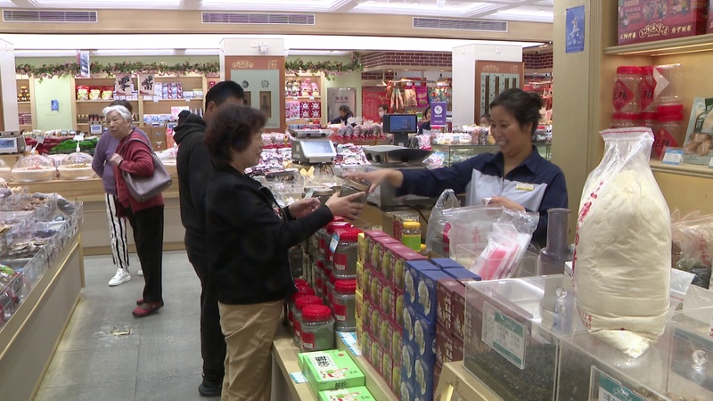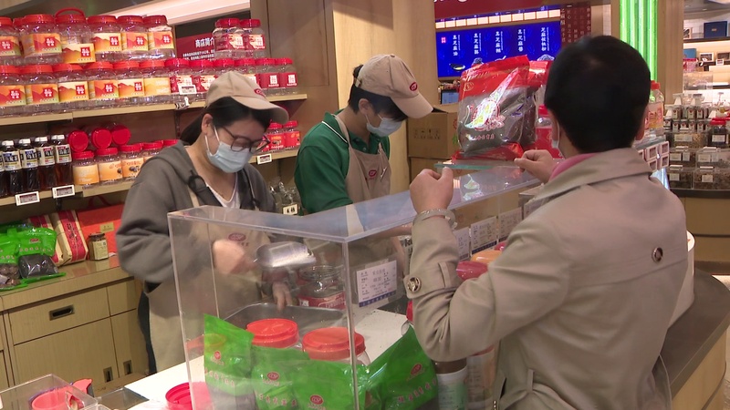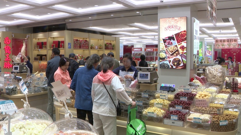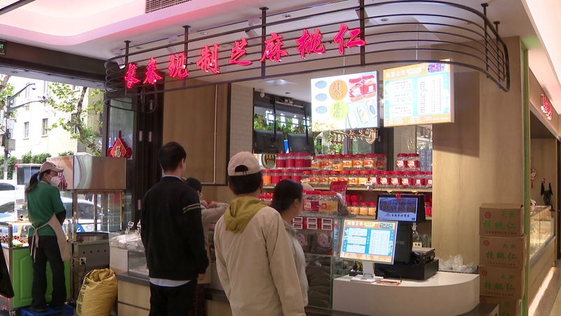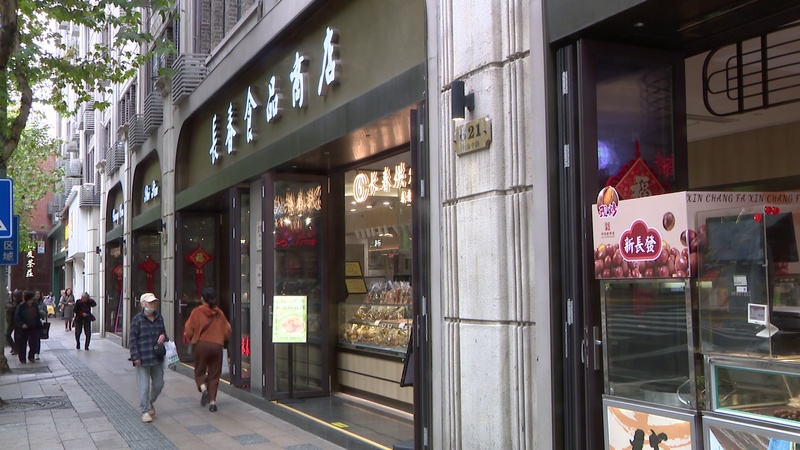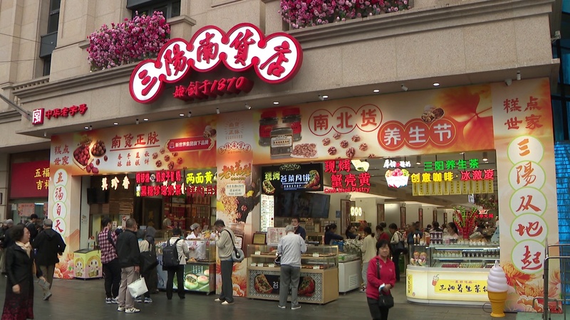 记者在南京路步行街上的三阳南货店看到,前来购买南北货的市民游客不断。