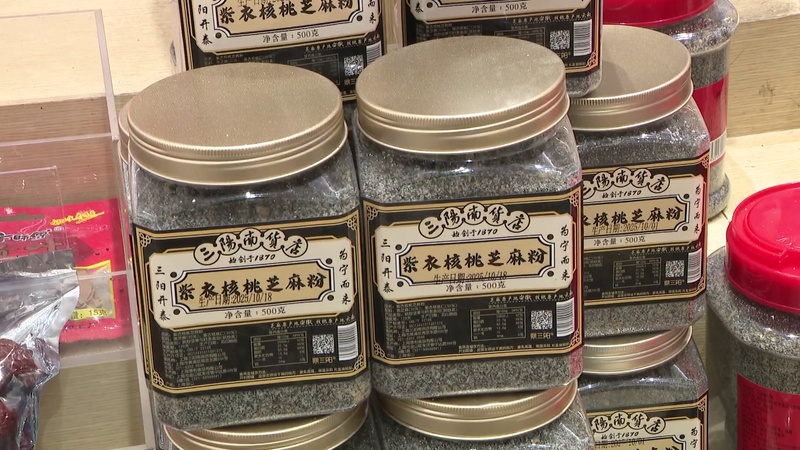 而芝麻核桃粉也是不少市民的“心头好”,现场磨制的芝麻核桃粉散发着阵阵香气,去年推出的紫衣核桃芝麻粉销售也颇旺,引得不少市民驻足。“芝麻核桃粉的销售增长比往年增长30%左右,平均线上线下每天销售芝麻核桃粉上2万瓶左右”,徐晓敏告诉记者。