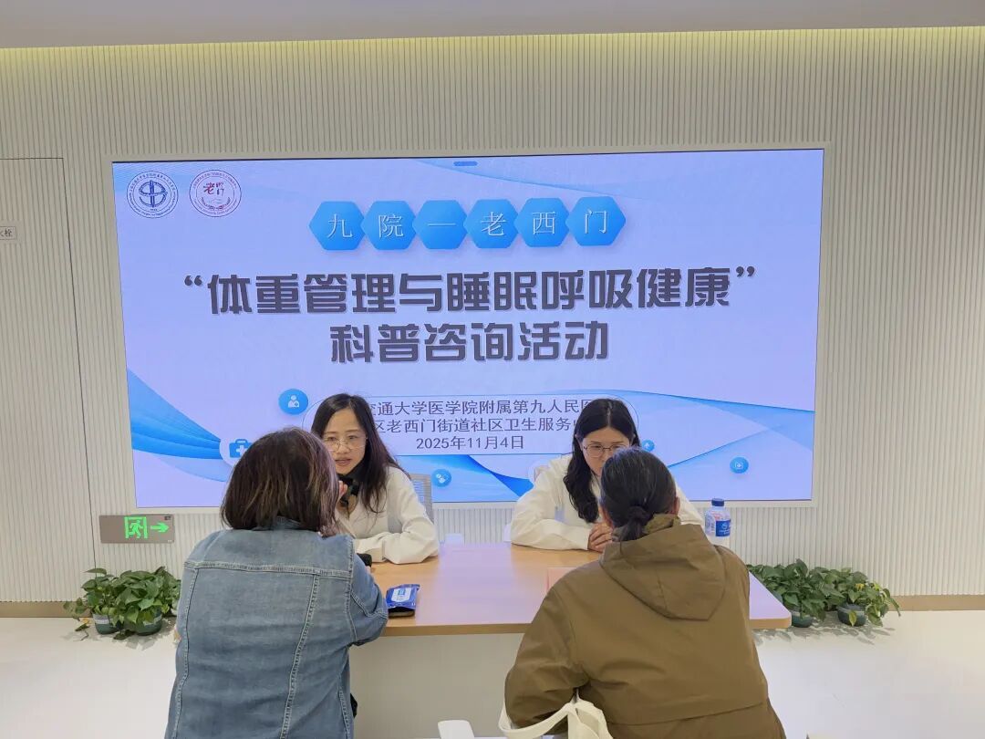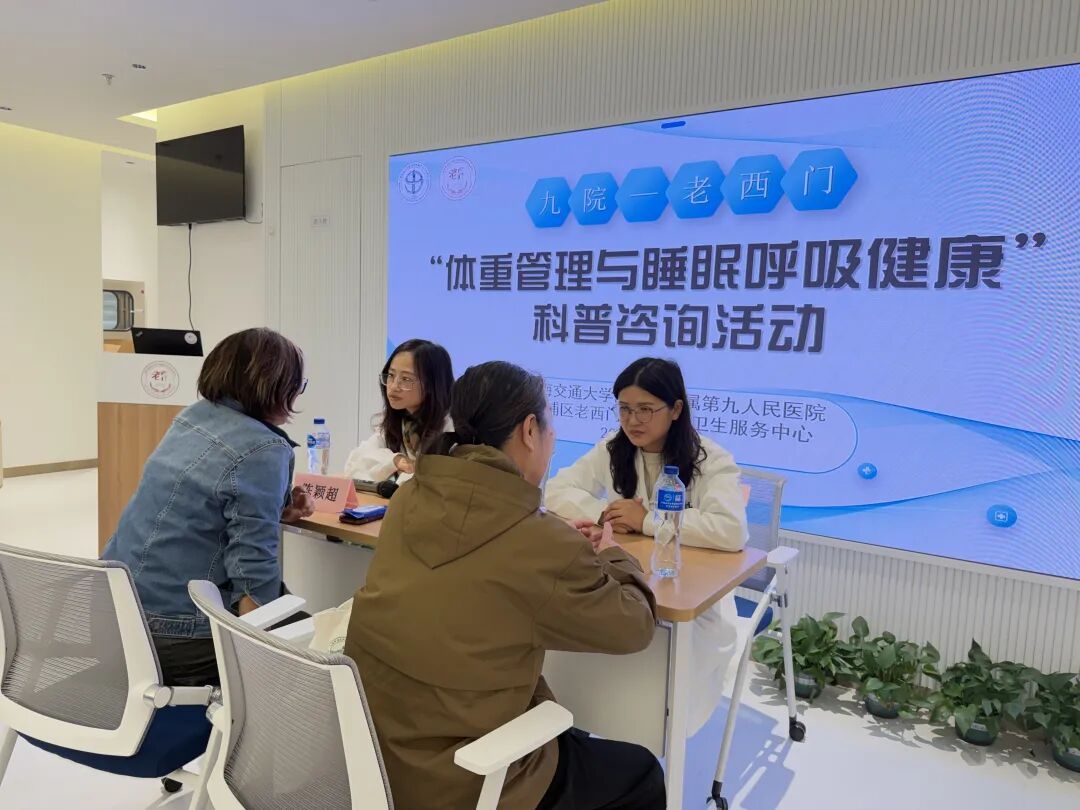 11月4日下午,上海交通大学医学院附属第九人民医院与黄浦区老西门街道社区卫生服务中心,联合举办了“体重管理与睡眠呼吸健康”科普咨询活动。