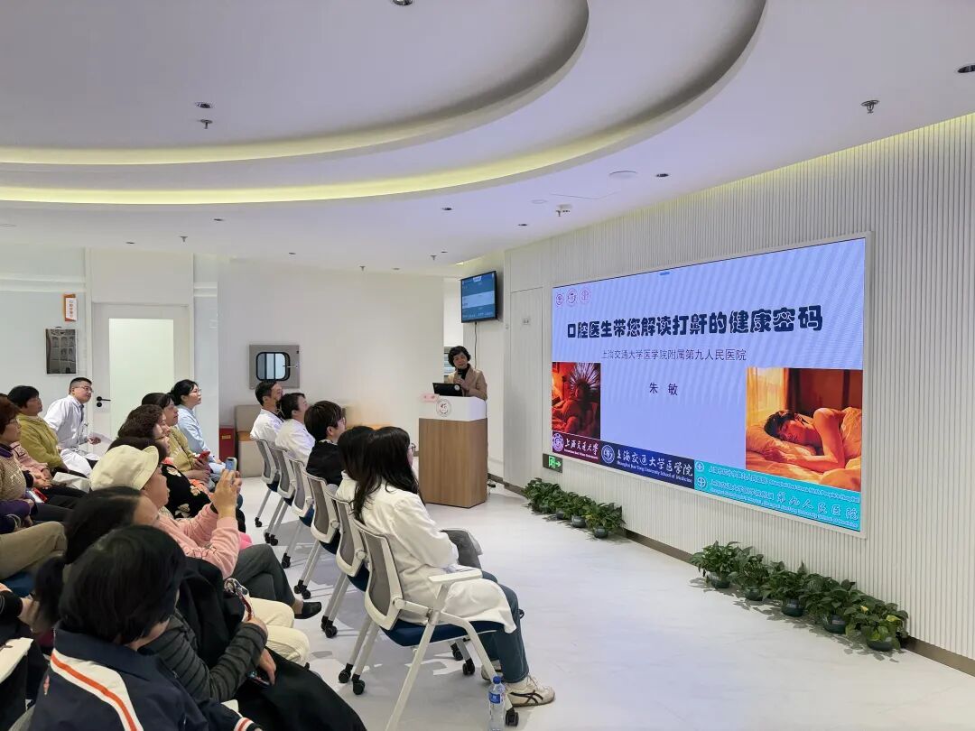 活动伊始,九院口腔颅颌面科主任医师朱敏以《口腔医生带您解读打鼾的健康密码》为题,开启了首场健康科普。她从阻塞性睡眠呼吸暂停(OSA)的识别讲起,率先打破了“打鼾等于睡得香”的常见误区,系统阐释了打鼾与肥胖之间相互影响的内在联系,并重点介绍了口腔颅颌面科在诊疗睡眠呼吸障碍方面的特色干预方法。朱敏主任强调,严重的打鼾并非小事,而是一种潜在的致死性睡眠呼吸疾病,是高血压、冠心病、糖尿病及脑血管疾病等多种严重并发症的重要诱因,必须引起公众的足够重视。