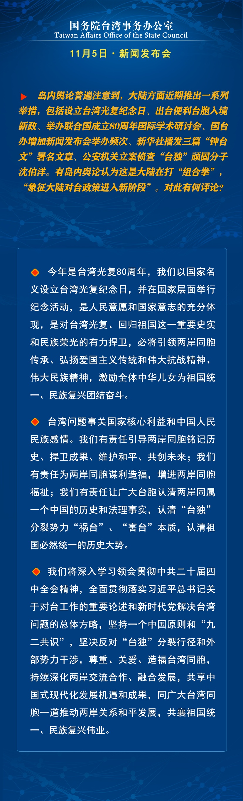 国台办:有责任让广大台胞认清祖国必然统一大势