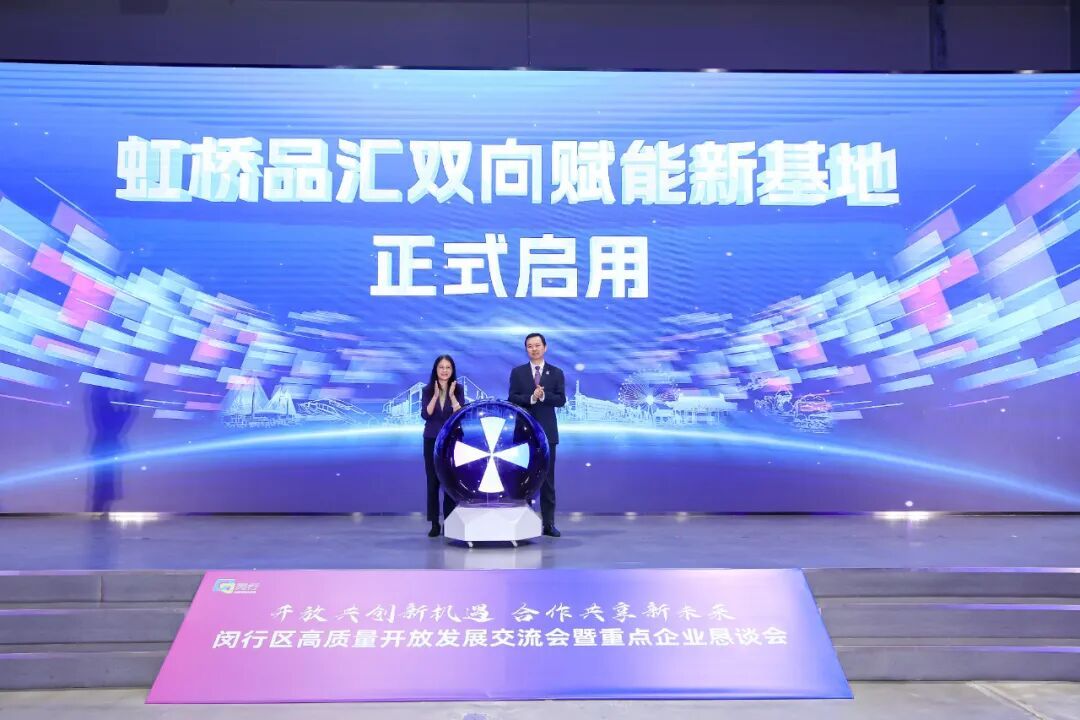 交流会现场,3个“双向赋能新基地”同步启用,虹桥品汇将以此为载体,持续推动“展商变投资商、展品变商品”转型升级,在国内国际双循环格局中搭建关键枢纽。