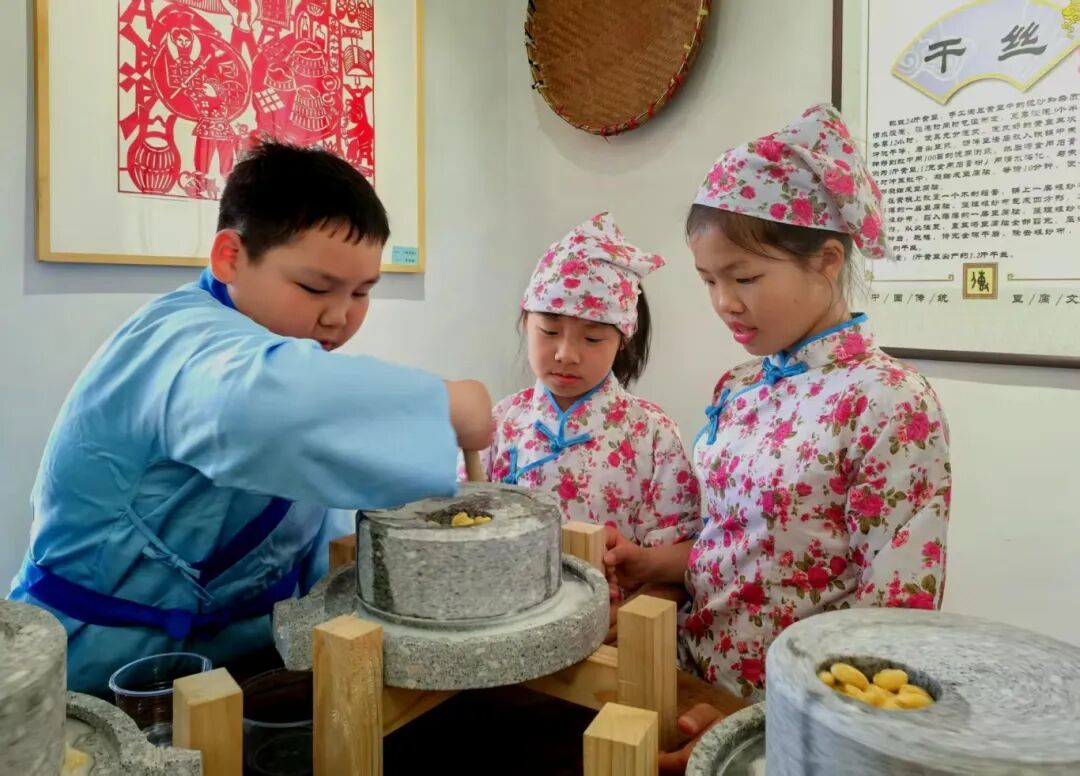 新姚村新村477号是原新村小学,如今改造成了非遗传习基地,也是民生实事项目落地的代表项目。这处约300平方米的基地里,汇聚了李塔汇豆制品技艺、松江刻漆技艺、传统舞蹈荡湖船、剪纸等多个非遗项目,集非遗展示、传承、体验、研究功能于一体。该基地自今年4月底启用以来,已累计承接开展非遗活动20场,并积极挖掘了箍桶制作技艺项目的传承保护和区级非遗项目的申报。李塔汇豆制品制作技艺传承人朱岳云告诉记者,单是今年暑假,他就在基地了当了好几回师傅,孩子们对制作传统豆制品非常感兴趣。“老手艺的未来还得要靠年轻人,传习场所有了,各种体验活动开展起来了,传承就不是一句空话了。”朱岳云说。