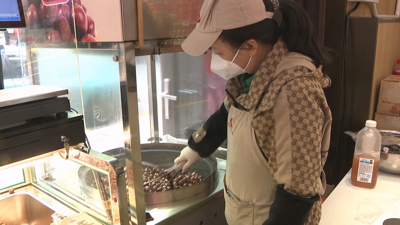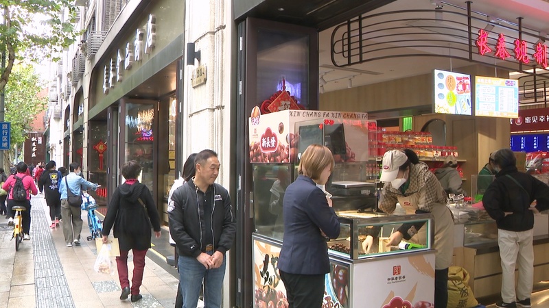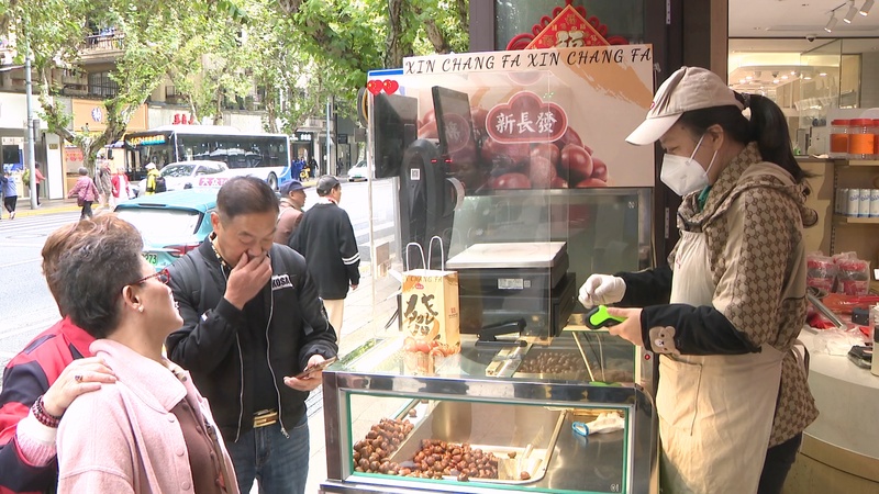 在淮海路上的这家老字号长春食品商店,店门口新长发糖炒栗子的摊位格外醒目,不时有市民游客前来买上一点。一些消费者买好后迫不及待地剥开壳尝鲜。“新长发有名的,从小吃到现在,一直相信这个牌子。”“蛮糯的,有点甜味,水分也蛮好,很好剥。”
