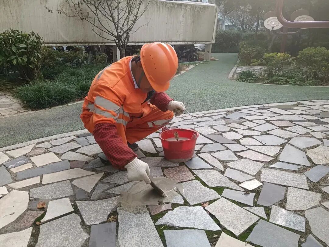 老年活动室外的地面坑洼,是居民近期反映的烦心事。诉求刚到新泾物业公司,身兼“双职”的盛慧慧便立刻安排工作人员上门查看。考虑到老年群体每天都会来活动室活动,他特意要求选用道路快速修补料,确保能够“速干”。施工人员当天进场、当天完工,不仅让活动室门口恢复平整,还将剩余材料用于修补健身器材区和凉亭长廊内的破损地面,用“一料多用”的精细化服务,把民生实事办得更到位。“咱小区物业办事又快又细心,住在这里真得很舒心。”居民陆惠平看在眼里,忍不住称赞道。