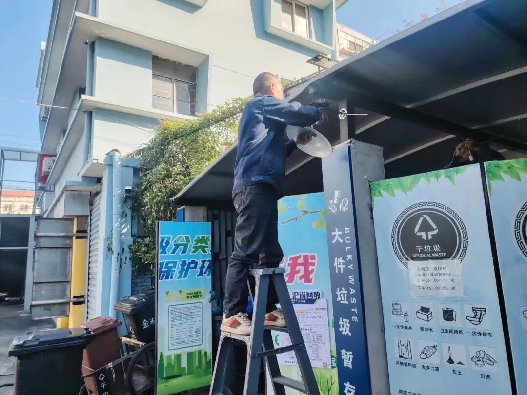 另一桩让居民和保洁员都满意的事,是42号垃圾房通了电。此前,党员罗建锋在东林居民第二党支部会议上提出,该垃圾房仅靠太阳能灯照明,晚上光线不足,居民来扔垃圾不方便,保洁员在里面工作,夏天不能吹电扇、冬天没法烧热水,太艰苦了。东林居民区党总支迅速响应,第一时间对接物业公司,盛慧慧再次发挥“双书记”协调优势,快速敲定从附近居民楼公灯电路牵线的方案。没过几天,垃圾房就装上了照明灯和插座,既解决夜间照明短板,又彻底满足保洁员日常用电需求。“现在天黑了能开灯,天冷了也能烧个热水喝,这服务太实在了!”保洁员顾玉兰笑着说。
