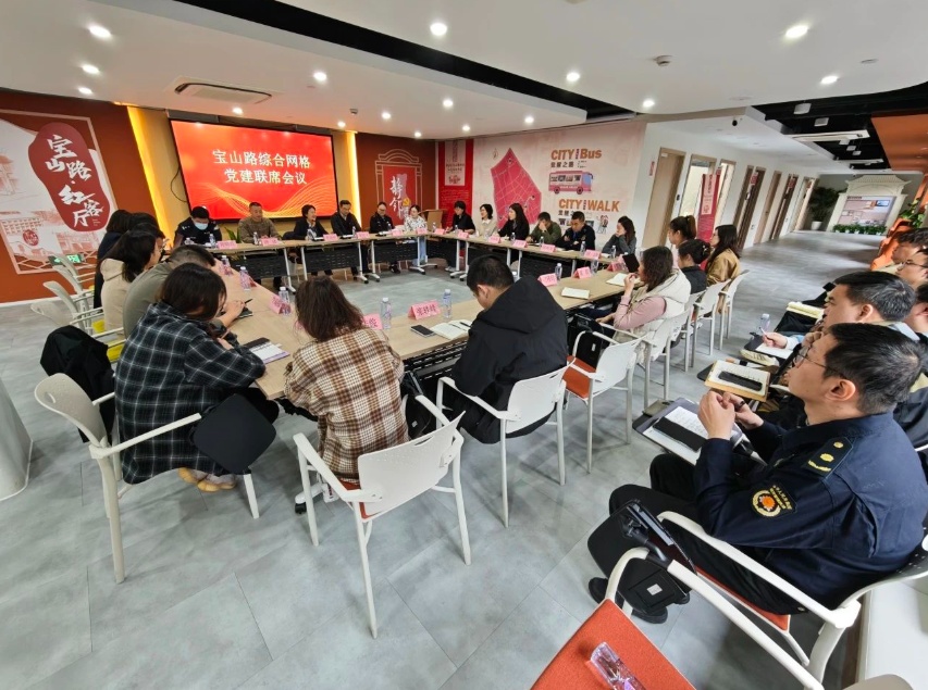 以党建为引领深化“多格合一”机制,变“单打”为“群治”。宝山路街道按中兴路分界设青云路、宝山路两个综合网格,建网格党建联席会议制度,依托网格工作站实行“1+7+N”力量配置(1名站长统筹、7类下沉力量分工、N类报到力量支援),构建“发现—研判—处置—巩固”全闭环治理体系,通过“网格吹哨、部门报到”形成跨部门联动的多元共治闭环。