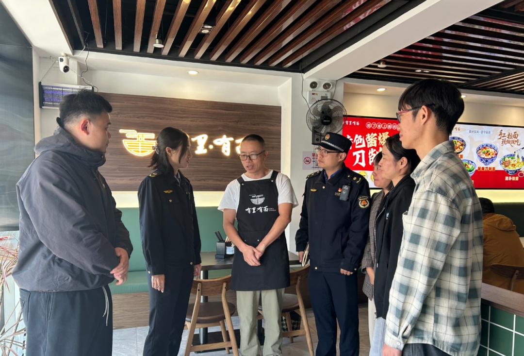 当他们巡访至人才公寓“供合家”时,注意到一家筹备中的新店正处于装修初期,施工流程、证照办理等环节尚不明晰。巡访员们主动上前与商铺老板沟通,耐心询问装修进度、经营规划及当前困惑。