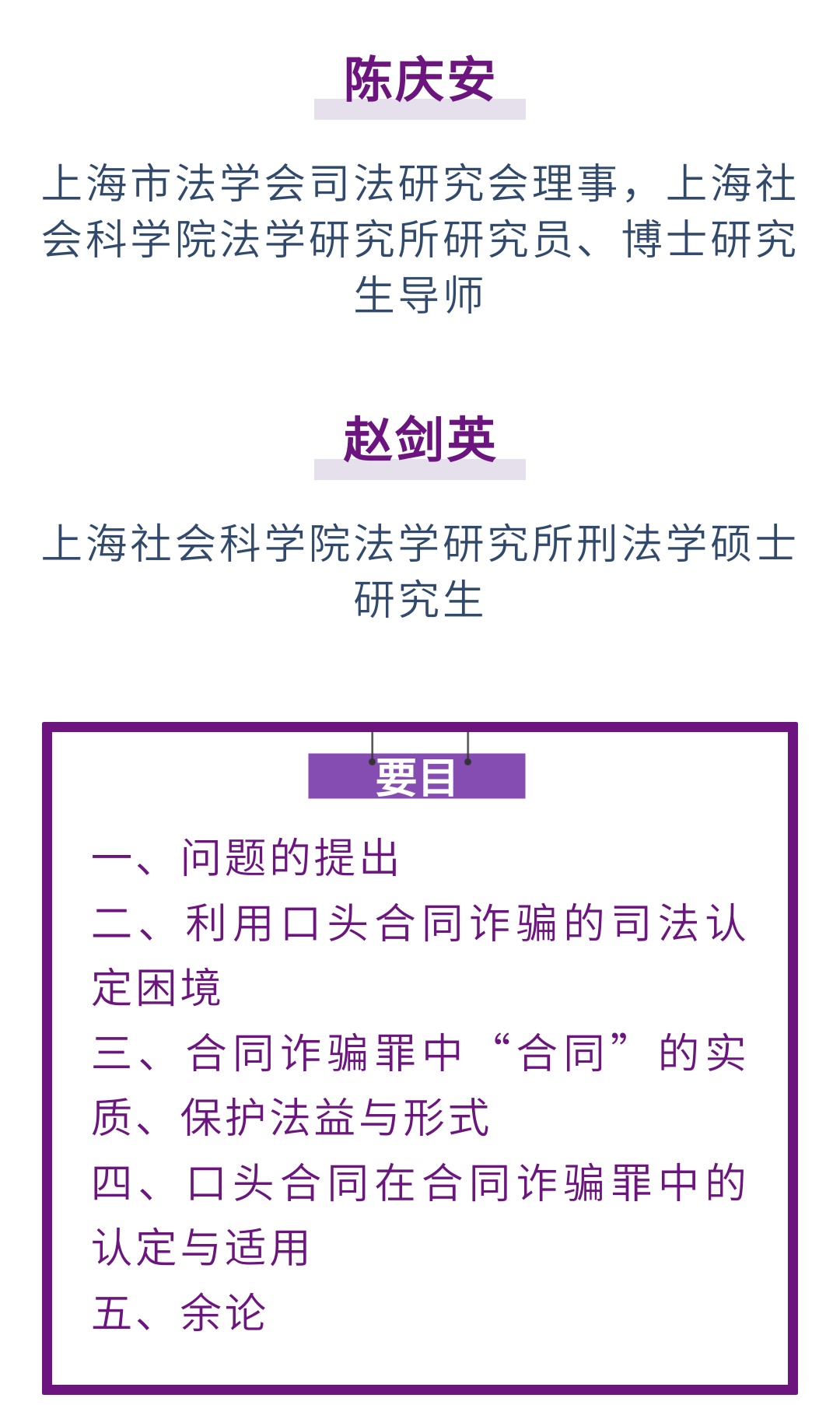 陈庆安、赵剑英:利用口头合同实施诈骗行为的定性问题研究