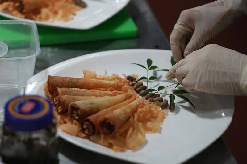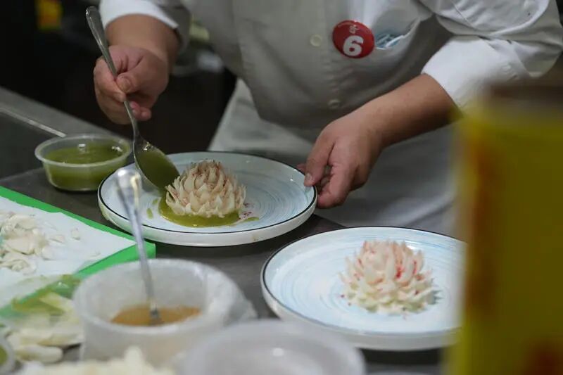比赛现场香气氤氲、创意纷呈。飘香榴莲冰川茄、一统(姜)山、乌龙戏百合……参赛队员们纷纷亮出绝活,从选材、刀工到烹饪、摆盘,每一个环节都精益求精,在追求美味口感的同时,最大限度锁住食材营养,生动诠释了健康饮食的多元可能。