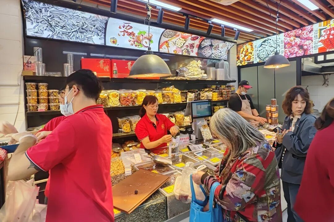 除了刷屏的冰糖葫芦,野栗香的糖炒板栗、糖炒山楂、烤红薯也都是秋冬必点的美味。此外,店里还有瓜子、花生、杏仁、腰果、开心果等各式炒货,好吃又耐囤,深受爷叔阿姨们的喜爱。