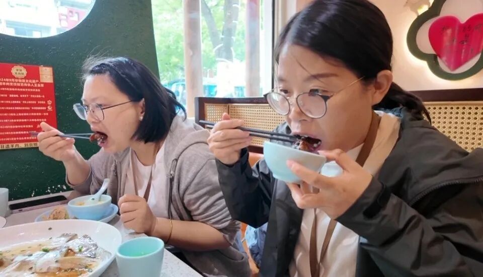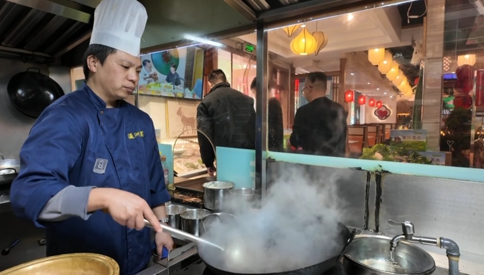 立冬节气临近,又到了吃羊肉进补的好时节。近日,位于崇明新河镇的瀛洲宴崇明羊肉馆人气持续攀升,不少市民专程前来品尝。 中午时分,瀛洲宴崇明羊肉馆内座无虚席,前来就餐的市民络绎不绝。后厨内,厨师们正忙着烹饪各色崇明羊肉菜肴。“天冷了就要吃羊肉,这是我们崇明老祖宗传下来的冬令进补习惯。” 一位正在用餐的市民说。 瀛洲宴崇明羊肉馆的羊肉菜品非常丰富,包括鲜甜的陈皮羊肉、汤汁浓郁的白汤羊肉、地道的白切羊肉以及羊肉水饺等,每一道菜品都散发着诱人的香气。当热气腾腾的羊肉菜品被端上桌时,食客们纷纷拿起筷子大快朵颐。 地道的口味不仅深受本地人喜爱,也吸引了不少岛外食客。“我一个月已经来这家店好几趟了,从市区特意过来,他们家的羊肉入口即化,吃起来特别香。” 一位来自上海市区的食客对店里的羊肉赞不绝口。还有一位来自启东的食客表示:“这里的羊肉挺好吃的,特别对我的胃口。” 左二:王金军 美味的背后,是对食材与技艺的坚持。店里选用的都是正宗崇明白山羊,作为国家级地理标志农产品,其肉质以细腻、鲜美而闻名。负责人王金军从事羊肉烹饪已有三十年,更是崇明羊肉传统烹饪技艺的非遗传承人。他打造的“铜锅陈皮羊肉”,在传统红烧基础上融入陈皮、枸杞等中草药,以铜锅慢炖,锁住羊肉本味,成了店里的必点菜。目前店里还开发出全羊系列菜品,以满足不同食客的需求。 编辑:焦倩倩