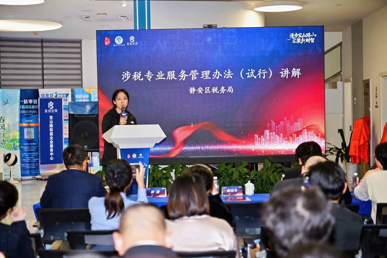 宝山路街道经济发展服务中心介绍了静安区招商引资产业政策;区发展和改革委详细解读了“静安信易贷”政策;区市场监督管理局就静安区广告行业政策进行了解读;静安区税务局第一税务所、第四税务所介绍了涉税中介相关政策和最新税收政策及便利化服务举措。
