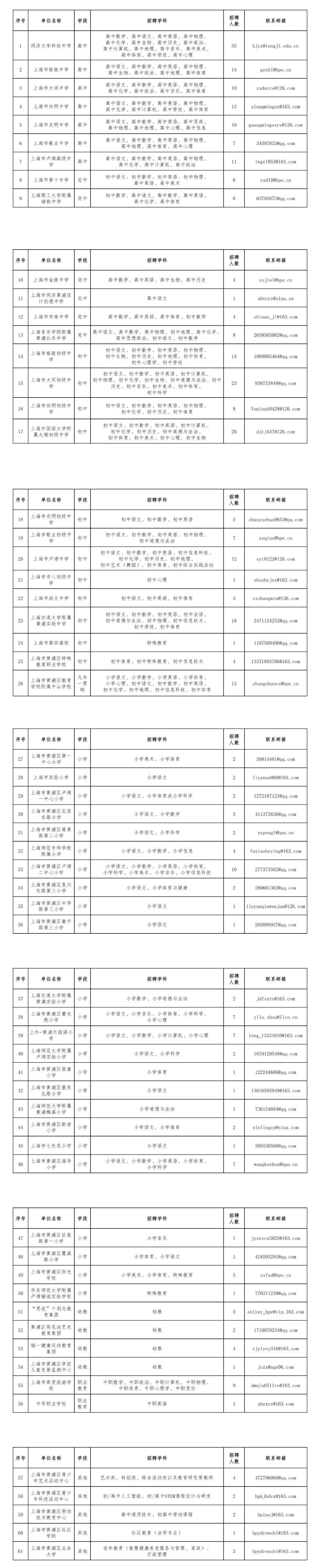 为进一步充实黄浦区师资队伍建设,优化黄浦区教师队伍师资配置,根据上海市人力资源和社会保障局《上海市事业单位公开招聘人员办法》(沪人社规〔2019〕15号),<黄浦区教育局关于黄浦区教育系统事业单位公开招聘师资的实施意见>(黄教人〔2023〕2号)等文件精神,结合教育系统实际需求,现将2026年黄浦区教育系统事业单位基层学校面向社会公开招聘教师岗位公告如下: