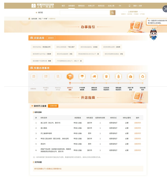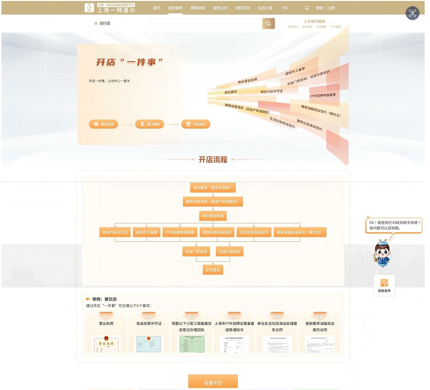 闵行区开店“一件事”开店指南