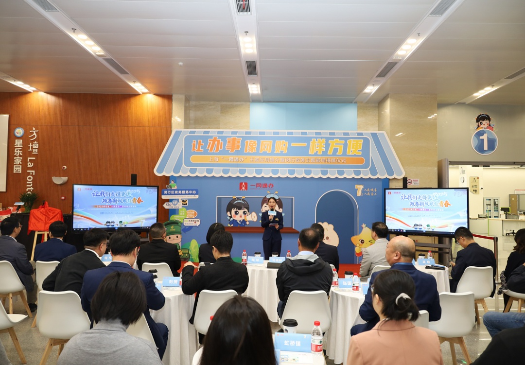 11月11日,“让我们走得更近——政务新风赋能青春”2025闵行“一网通办”宣传月主题活动在闵行区政务服务中心举行。活动现场,开店“一件事”应用正式上线,现场,新虹街道、古美路街道、莘庄工业区三个试点街镇窗口代表接受授牌,这意味着在闵行开店创业正式迈入“一键导航、AI辅助、全程网办”的极简快办新阶段。