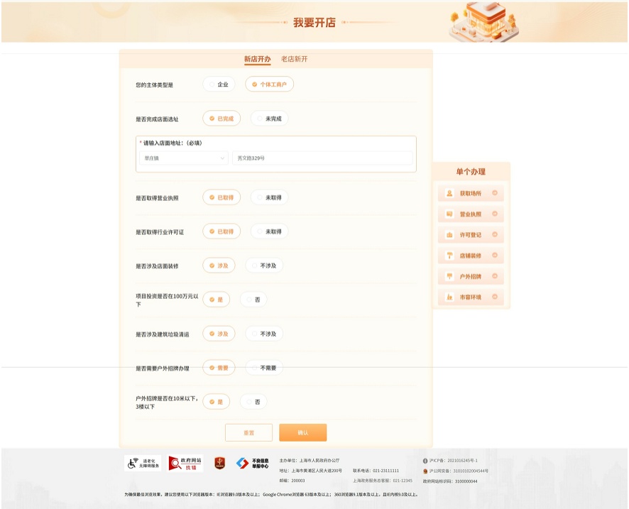 点击“新店开办”,系统将根据您的实际情况进行智能引导: