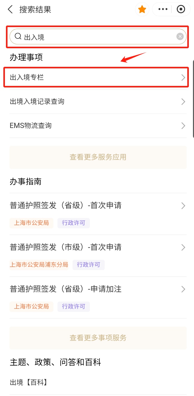 上“随申办市民云”(APP/微信小程序/支付宝小程序),首页搜索关键词“出入境”,点击进入“出入境专栏”服务。