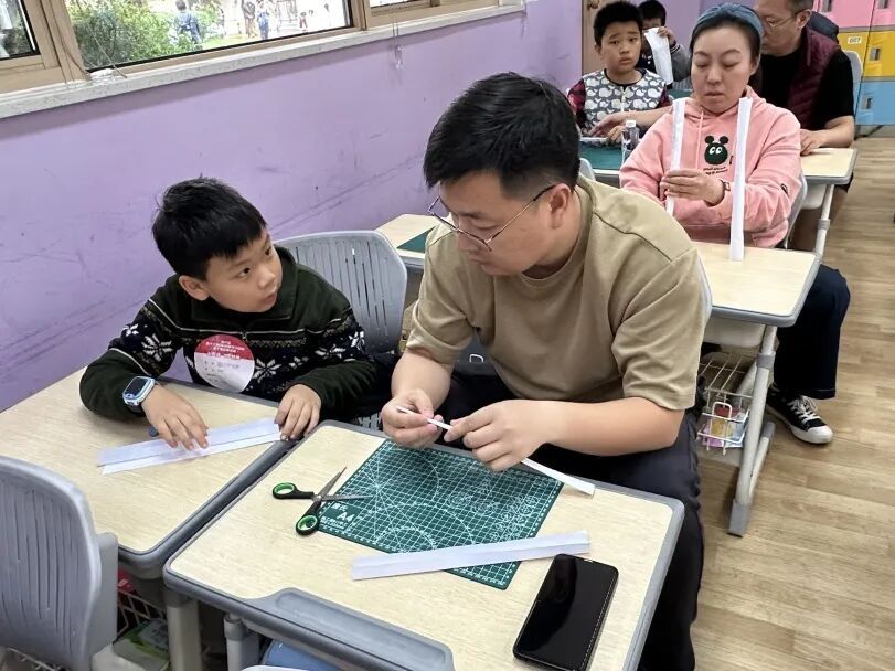 “AI领航・纸翼穿越”赛场则充满了竞技的紧张感。亲子组合反复调试纸飞机的形状、重心,只为让它精准穿越指定路线,在一次次尝试中感受空间思维的魅力与AI导航的初步原理。