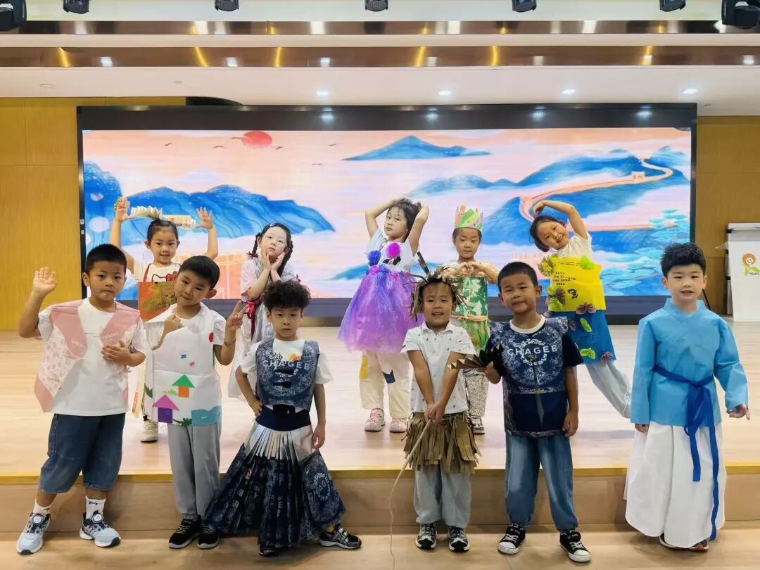 最引人注目的当属“活力AI・助力创意・逐梦科技”服装秀赛场。废旧光盘、纸箱、塑料瓶等常见的废旧材料,经过亲子的巧手制作,摇身一变成了兼具科技感与时尚感的创意服装。小选手们身着作品自信走秀,每一件服装都表达着“AI+环保+艺术”的融合创意,赢得现场观众阵阵掌声。