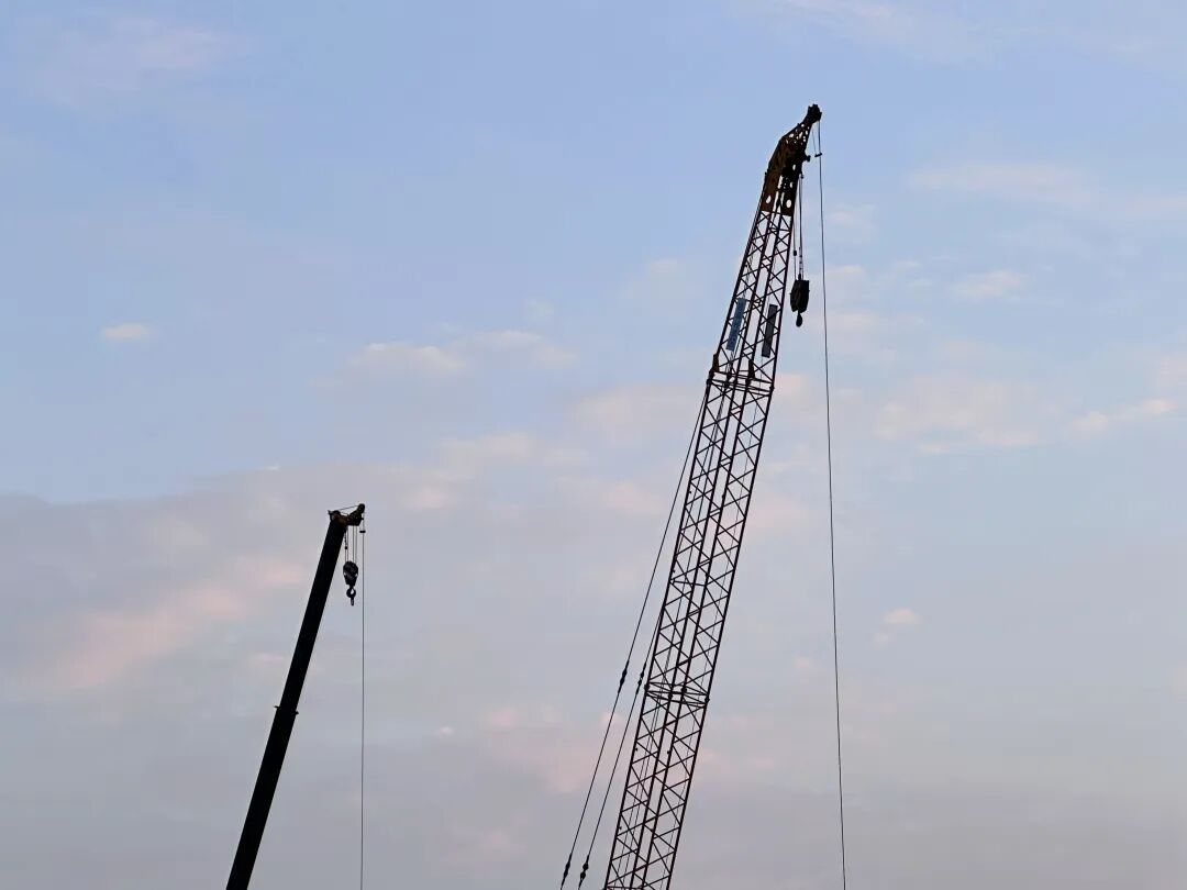 最引人注目的是那台履带式起重机,机身漆着醒目的银色,履带碾过地面时带着厚重的质感。它的起重臂足足有一二十米,顶端的吊钩像巨人的手掌,稳稳钳住几吨重的钢结构件。不远处的轮胎式起重机则显得灵活,在施工场地内自由穿梭,哪里需要建材,它就立刻“奔赴”哪里。南侧站台需要紧急运送一批电缆,这台起重机迅速调整位置,起重臂轻轻一勾,电缆盘便离了地,转弯、倒车、定位,整套动作一气呵成,短短几分钟就将物资送到了指定位置。两种起重机默契高效配合,让一项项工程快速推进竣工,让一个个项目蓝图变为现实。