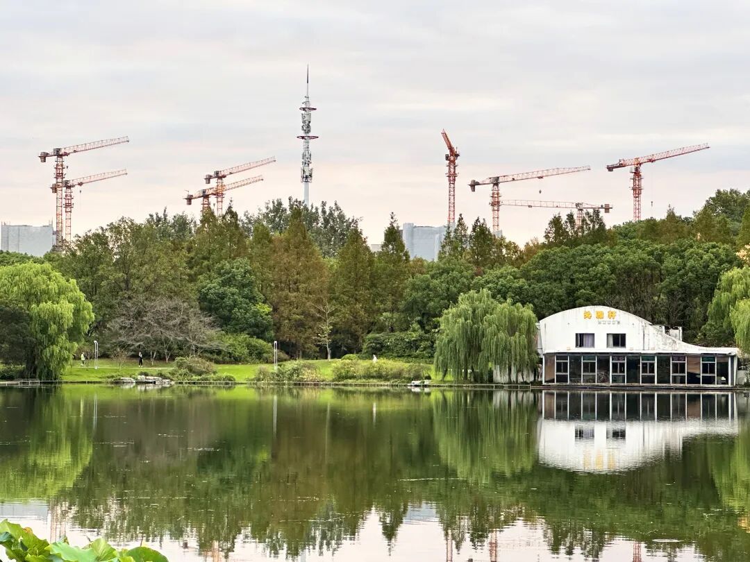 站在闵行商业中心东广场台阶,眺望嘉闵铁路莘建东路站工地;站在闵行体育公园锦绣湖栈道,目睹九星工程新建摩天楼雄壮;站在闵行商务楼群春申湖平台,观赏莘庄地区天天大变化景象。看地铁隧道的深度掘进,看擎天楼层的高度攀升。那一座座起重机臂膀的高度,正是那蓬勃生长的姿态,正是那执着向前的毅力。它像极了闵行这片土地的发展劲头,更像极了祖国蓬勃发展的生动缩影。起重机,看似笨重的钢铁身躯,却藏着“举重若轻”的智慧,它们不是冰冷的机器,而是祖国建设速度的见证者。从一片平地到鳞次栉比的楼宇,从窄巷旧屋到现代化社区,从泥泞小路到宽阔大道,每一座起重机的起落,都在书写着祖国发展的辉煌篇章。