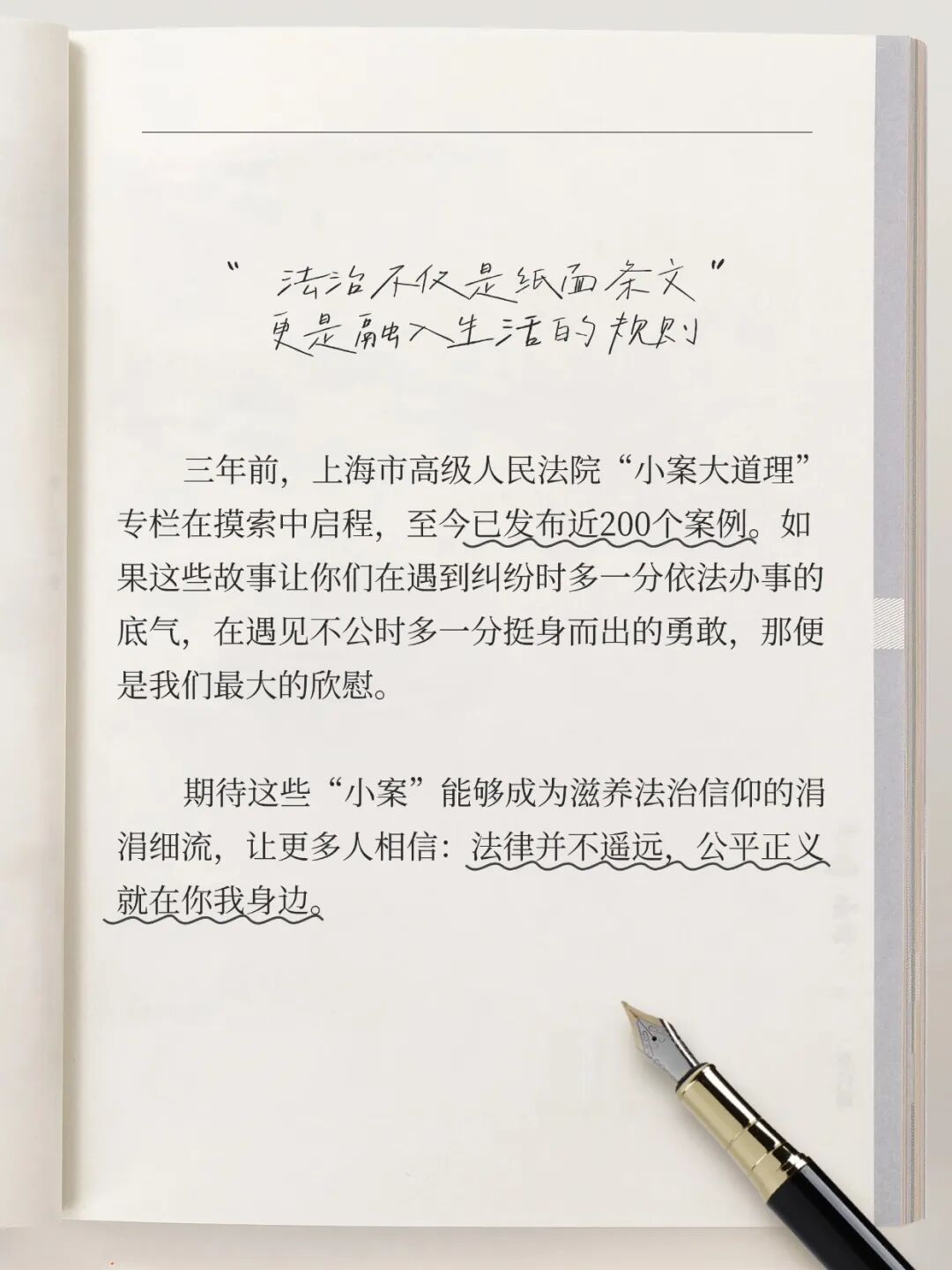 法治不是挂在墙上的条条框框,也不是电视里那些离我们老远的大案要案,而是解决这些鸡毛蒜皮的公道,让每个人遇事有地方说理。“小案大道理”,不是喊口号。大小之间,有时候会相互转化;城市与市民,既讲规矩,也通人情。